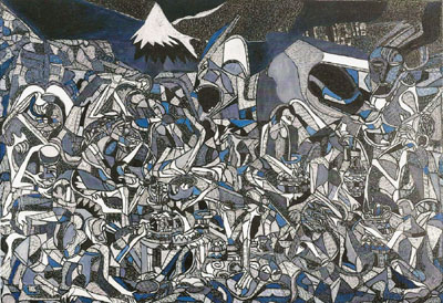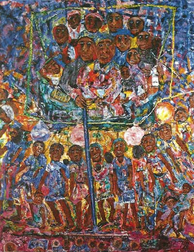 Julius Njau, "Night Market at Mount Kili", huile sur toile,