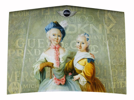 Hilton Sisters selon Winterhall, Acrylique sur capot MINI, 130 x 95 cm,