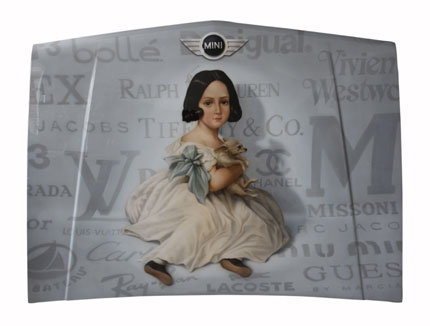 Charlotte et son nouveau , Acrylique sur capot MINI, 130 x 95 cm, 2012