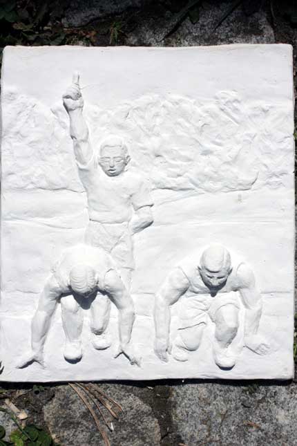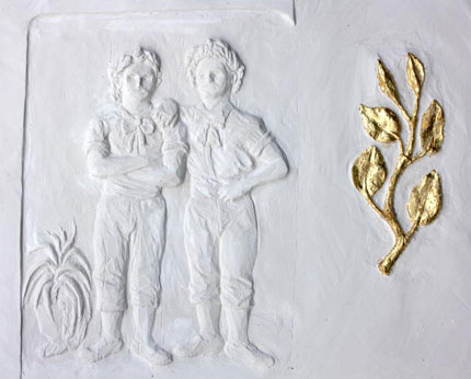 Sportverein Jahrhundertwende, Relief, Gips zT mit Blattgold , 2011 | top