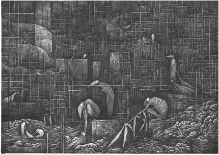 "Babel", Tinte/Papier, 53 x 37 cm, und Multiple Siebdruck, 2013