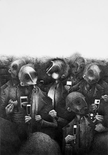 "Parler, Boire et Manger", Tinte/Papier, 3 x 70 x 50 cm, 2013|