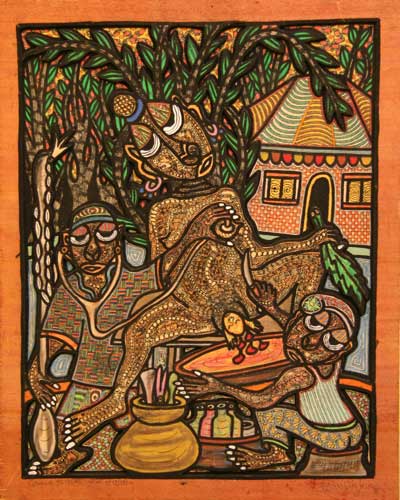 "Hunter's dream", Mischtechnik auf Holz | Seitenanfang